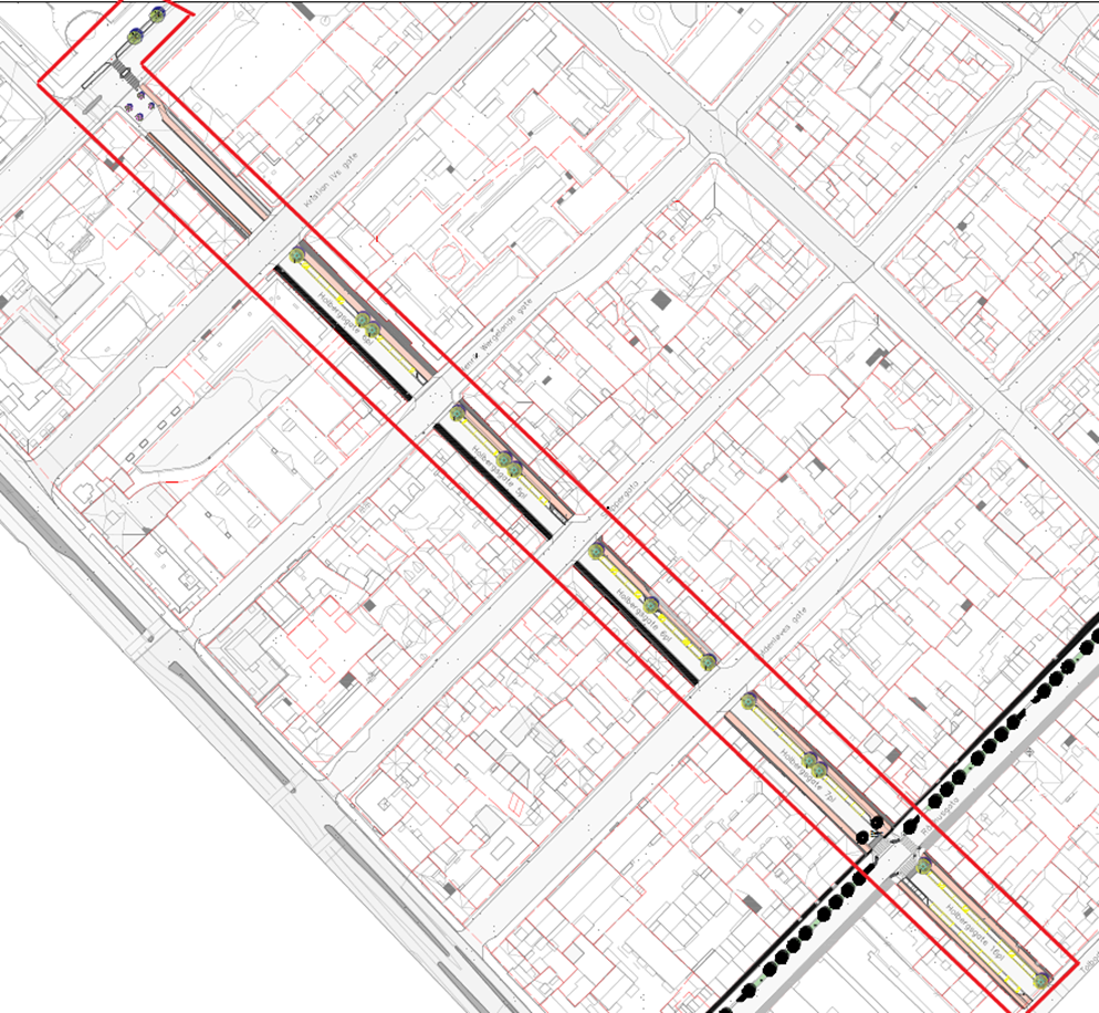 Holbergsgate, Tordenskjolds gate - Dronningens gate, fortauutvidelse