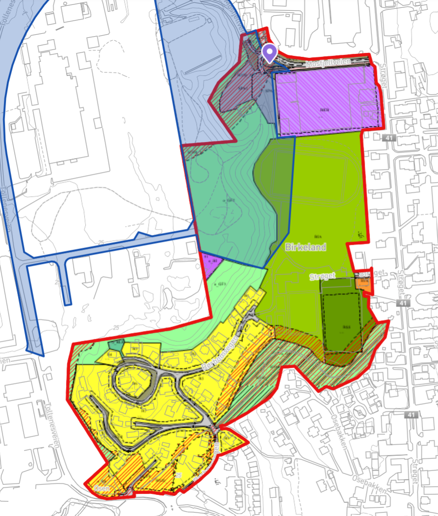 Parallelt med etablering av ny snuplass vil det etableres busslomme på RV41 langs «Tomta» på Birkeland for å betjene sentrum, med kantstopp som «avstigendeholdeplass» i motsatt retning.
